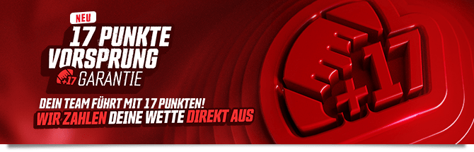 Besonderheit: Die „17-Punkte-Vorsprung-Garantie“ gilt auch für Kombiwetten und MyMatch-Wetten. Wenn dein Team mit 17 Punkten führt, wird deine Auswahl als gewonnen gewertet.