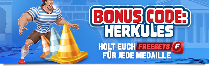 - Angebot: Macht eine Einzahlung mit dem Code HERKULES und verfolgt den Weg der deutschen Athleten in diesem Sommer. Jede gewonnene Medaille lässt euch Freebets gewinnen!