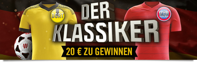 • Die Gratiswette gilt ausschließlich als Live-Wette auf das Spiel Borussia Dortmund / Bayern München.