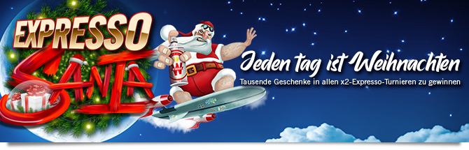 Ihr gewinnt dieses Geschenk in einem 25 € Expresso. Ihr erhaltet 5.000 Chips (50x25) für die Santa-Freeroll.