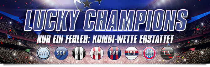 - Die Promotion Lucky Champions gilt für die 4 Spiele der Champions League am 12. und 13. März und für alle Kombiwetten, die vier Tipps auf diese Spiele enthalten.