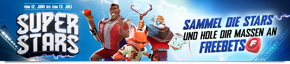 Sammelt vom 12. Juni bis zum 13. Juli alle 15 Karten des Teams „Superstars“ und kassiert jede Menge Freebets!