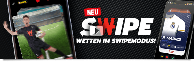 Ab jetzt könnt ihr jeden Tag eure Wetten mit der neuen "Swipe" Funktion platzieren. Wenn ihr über die Registerkarte "Swipe" in eurer Navigationsleiste geht, werden euch die trendigsten Wetten vorgeschlagen und ihr müsst nur noch auswählen!
